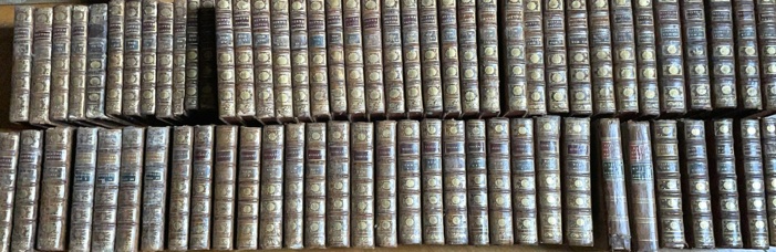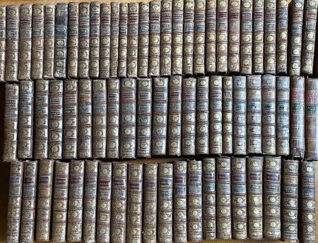 Raccolta di 67 volumi, legature dell’epoca in pelle “basane marbrée”, dorsi con 5 nervi, fregi e titoli in oro, tagli rossi, sguardie in carta marmorizzata, segnapagina in seta verde. Edizione in 12mo (cm. 16,3) realizzata presso l'Imprimerie Royale sulla base della copia in quarto. Arma del dedicatario re di Francia e insegna dell'Imprimerie royale sul front.