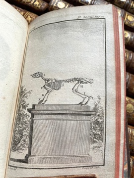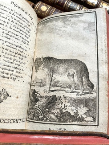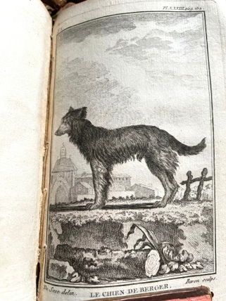 Tomo decimo: (6), 165, (3), tav da XXV a LII (continua la numerazione dal volume precedente), altre du tavole ripiegate con: Dimensions des Chiensdes principales races e Table de l’Ordre des Chiens. Les Chiens avec ses variétés.