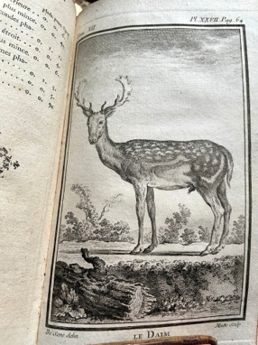 Tomo dodicesimo: (6), 136, (2), tav. da XX a XXXVII (continua la numerazione dal volume precedente). Le Daim, Le Chevreuil.