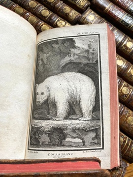 Tomo sesto, 1777: pp. (10), 230, xxxviij, (2), tav. XXXII f.t. DE l’OURS blanc ou Ours de mer, del’Agouti, du Paca et de l’Akouchy... de la Giraffe.