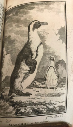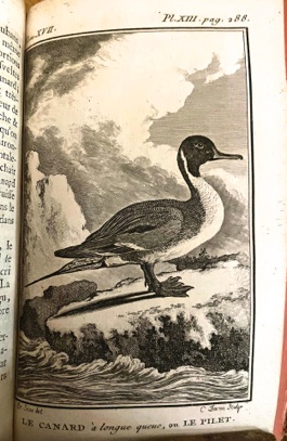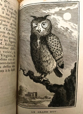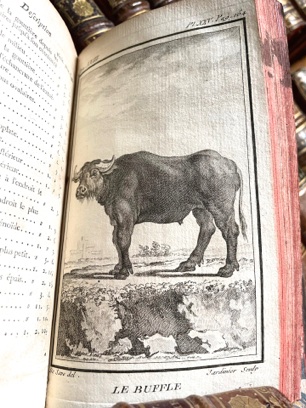 La copia è composta di 67 volumi dell'edizione, così distribuiti: 31 per la Storia Naturale, Quadrupedi e le tables 1752-1768 (manca il vol. 29, vol. 7 in due tomi), 18 per gli Uccelli 1770-1785, 14 per i Supplementi 1774-1789. Sono inclusi i 4 volumi degli Ovipari di Lacépède, illustrati con 49 tavole fuori testo 1788-1790.