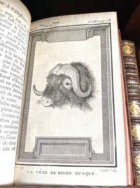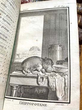 Tomo undecimo, 1782: pp. (10), 412, (2). Tav. XXIX f.t. Du Tapir, De l’Elephant, Du Cheval, Du Czigitai, Des Boeufs, De l’Aurochs et du Bison...
