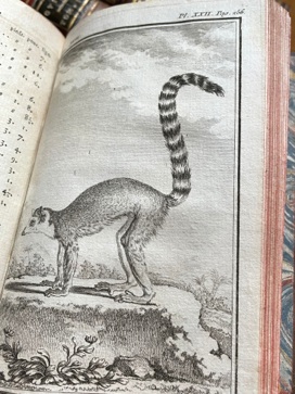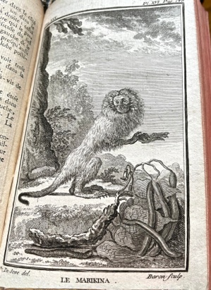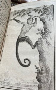 Tomo trentesimo: (4), iv, 275 (1), lxxxiij (Concordance et table alphabetique des noms pour les animaux quadrupedes par M. de Buffon), (2). Tav. XVIII f.t. Les Sapajouset les Sagoins, L’Ouarine et l’Alouate, Le Coaita et l’Esquima, Le Sajou, Le Sai, Le Saimiri, Le Saki, Le Tamarin, L’Ouistiti...