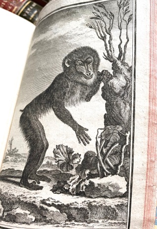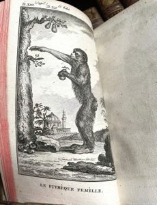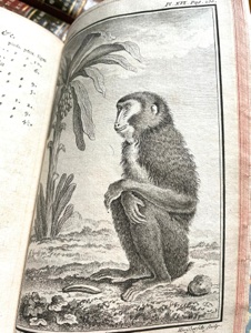 Tomo tredicesimo, 1789: pp. (2), xxiv, 320, (2). Tav. 51 f.t. Des Orangs-outangs, du Pithèque, du petit Cynocéphale, Le Babouin des bois...