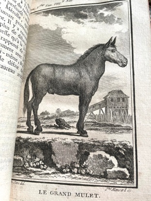 Tomo quinto, 1777: pp. (14), 334, (2). Tav. XXXIV f.t. Des Mules, de Cheval, de l’Ane, du Zebre, du Boeuf, du Bison, du Zebu, di Buffle, de la Brebis, du Mufflon...