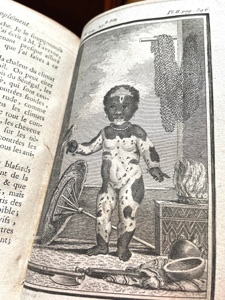 Tomo ottavo, 1778: pp. (10), 416, xxxiv, tav VI f.t. Variétés de l’espèce humaine, Sur le couleur des Nègres, Sur les Nains de Madagascar, Sur les Patagons, Des Américains, Sur les Monstres...
