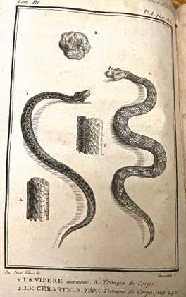 Tomo terzo, 1790: pp. 24, 432. Tav. XI f.t. Des Serpens, La Vipère, L’Aspic, Le Céraste...