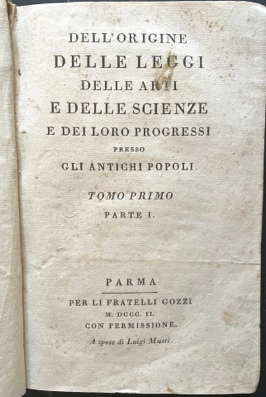Dell’origine delle leggi delle Arti e delle Scienze e dei loro progressi presso gli antichi popoli.