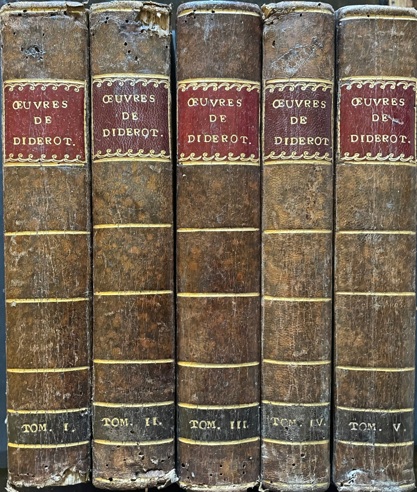 Sei volumi in 8vo piccolo (cm. 17,5); legature in mezza pergamena con tasselli e titoli in oro; pp. 348; 366; 460; 475, (1); 465, (1); 290. Rara contraffazione belga dello stesso anno dell'edizione ufficiale di Parigi. € 780