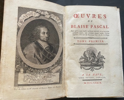 Prima edizione completa delle opere di Pascal, contenente molto materiale significativo pubblicato qui per la prima volta. Pascal è la figura di spicco tra i matematici europei della metà del XVII secolo. Questa edizione fu curata da un importante divulgatore scientifico francese e importante contributore all'educazione scientifica, Charles Bossut (1730-1814). Scrisse anche il "Discorso sulla vita e le opere di Pascal", che occupa le pagine da 3 a 119 del volume I di questa edizione. I primi tre volumi sono dedicati agli scritti letterari e filosofici di Pascal, gli ultimi due volumi ai suoi testi scientifici.