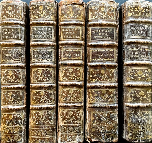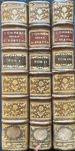 Cinque volumi in 8vo (cm. 20); belle legature originali in piena pelle con cornice in oro ai piatti ; dorsi a 5 nervi con titolo e ricchi fregi in oro. Titoli stampati in rosso e nero; ritratto inciso; pp. 425 (3); XI (1), 549(1); VIII, 526; VIII, 456 + 9 tavole incise ripiegate; VIII, + 5 tavole incise ripiegate. Bella copia. n.d.