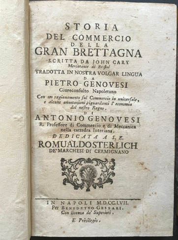 Due volumi in uno in 8vo (cm. 19); piena pergamena rigida coeva; primo frontespizio inciso, pp. 263; Frontespizio inciso del Tomo II, pp. 138 + carta d’errata del primo tomo.