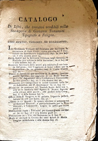 Ai cortesi lettori: ... mi lusingo di aver fatta cosa grata al pubblico, presentandola impressa co’ nitidissimi caratteri maiuscoli de’ Signori Fratelli AMORETTI...