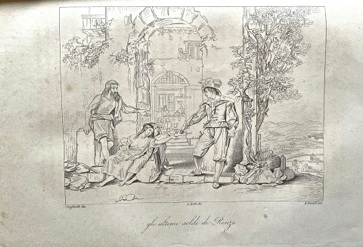 Canto sull’ARTE di Napoleone Giotti; Macchiavello, Statua di Lorenzo Bartolini (incisione a piena pagina); Cenni sulle opere di Luigi Pampaloni (incisione a piena pagina), la partemza di Giotto con incisione a piena pagina; San Giovannino con incisione a piena pagina; il Silenzio con incisione a piena pagina. Con veline protettive originali.