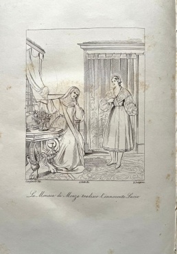 Il perdono di Fra Cristoforo; Il Griso travestito da mendicante spia la casa di Lucia; Fuga dei promessi Sposi con Agnese; Gli ultimi soldi di Renzo; La Monaca di Monza tradisce l’innocente Lucia; Lucia in potere dell’Innominato. n.d.