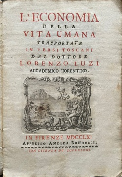 L’economia della Vita Umana trasportata in versi Toscani dal Dottore Lorenzo Luzi Accademico fiorentino.