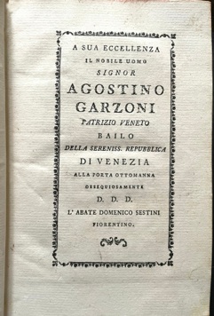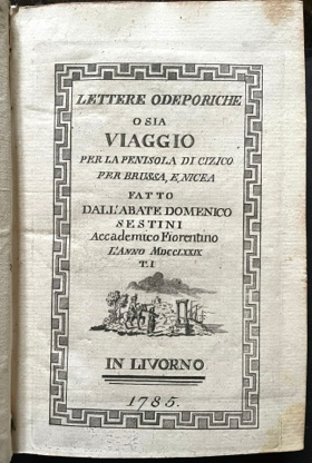 Lettere Odeporiche o sia VIAGGIO per la Penisola di Cizico per Brissa e Nicea fatto dall’Abate Domenico Sestini Accademico Fiorentino L’anno 1779.