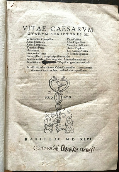 Vitae Caesarum quarum scriptores hi Suetonius Tranquillus, Dion Cassius, Aelius Spartianus, Iulius Capitolinus, Aelius Lampridius, Vulcatius Gallicanus, Trebellius Pollio, Flauius Vopiscus, Herodianus, Sex. Aurelius Victor, Pomponius Laetus, Io. Baptista Egnatius,