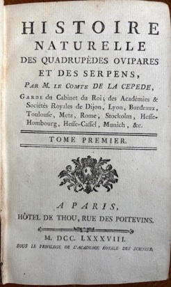 Histoire Naturelle des Quadrupèdes ovipares et des Serpents (1788-1790)