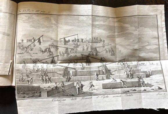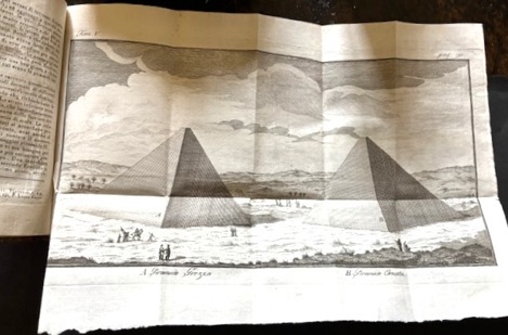 Legature in mz. pelle coeve con tit. e fregi in oro; le tavole più volte ripiegate, riguardano l'antico Egitto.