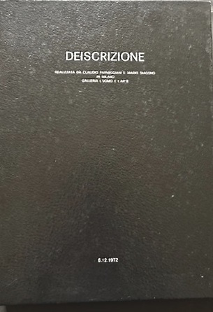 Con queste parole nel 1972 Claudio Parmiggiani scrive all'amico Mario Diacono già negli Stati Uniti l'intenzione e il desiderio di continuare la loro collaborazione e gli propone una nuova azione d'arte che si realizzò sempre nello stesso anno con lo spettacolo messo in scena presso la Galleria Castelli di Milano le cui immagini furono poi pubblicate nel libro DEISCRIZIONE.