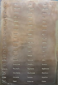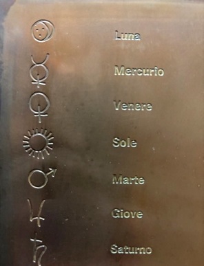 Una lastra in rame con incisi segni astrologici con velina protettiva originale; Lastra in zinco con la fotografia dello Scriba tatuato con velina protettiva orig.; foto di antico Scriba applicata su cartoncino con velina protettiva orig.; Tavola dell’Almanacco perpetuo con velina protettiva orig.