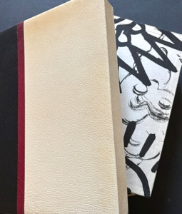 Bellissima scatola in pieno marocchino a più colori di custodia per il prezioso libro. Riprende i colori e i motivi dell’astuccio originale contenuto all’interno.