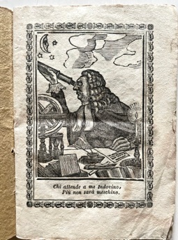In 16mo (cm. 12,5); cartone coevo; Antiporta in xilografia con la scritta: Chi attende a me indovino, Più non sarà meschino.