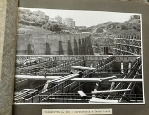 Applicate su cartoncino grigio belle fotografie originali dello Studio Vasari di Roma di costruzioni eseguite dal 1941 al 1950 dalla Ditta Federici e Igliori di Roma: