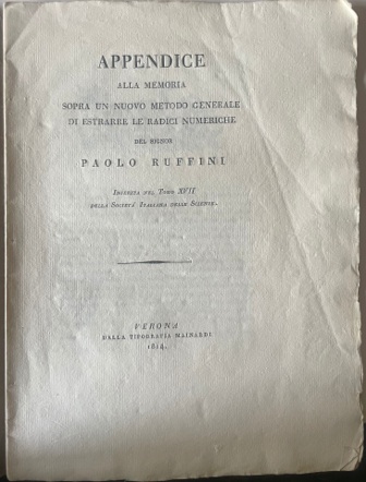 Appendice alla Memoria sopra un nuovo metodo generale di estrarre le radici numeriche del Signor Paolo Ruffini inserita nel Tomo XVII della Società italiana delle Scienze.
